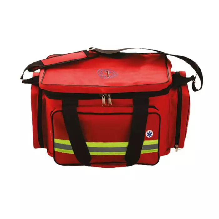 کیف اورژانس سایز بزرگ، داخل کیف به کمک صفحاتی به گونه ای طراحی و جدا سازی شده که میتوان تمامی لوازم و ملزمات اورژانش ( ست احیا ) به صورت تفکیک شده داخل آن قرار داد، همچنین ابعاد بزرگ کیف اورژانس قابلیت قرار گرفتن کپسول 2/5 لیتری را دارا میباشد. فضای اصلی کیف اورژانسی به کمک درب زیپ دار باز شده که دسترسی کاربر را به تمامی لوازم مورد نیاز آسان میکند و همچنین در طرفین و جلوی محصول فضایی طراحی شده برای وسایل ضروری تر و پر مصرف که به محض نیاز کاربر بتواند در کمترین زمان به آن دسترسی داشته باشد.این محصول از پارچه برزنت مقاوم وقابل شستشو تولید شده ودارای 1 بند آویز و 1 بند دستی میباشد که بسته به موقعیت میتوان هنگام کیف از آن استفاده کرد.